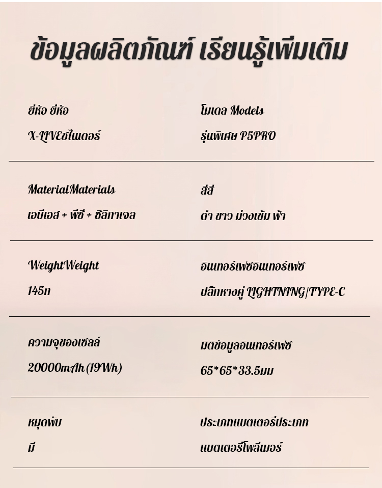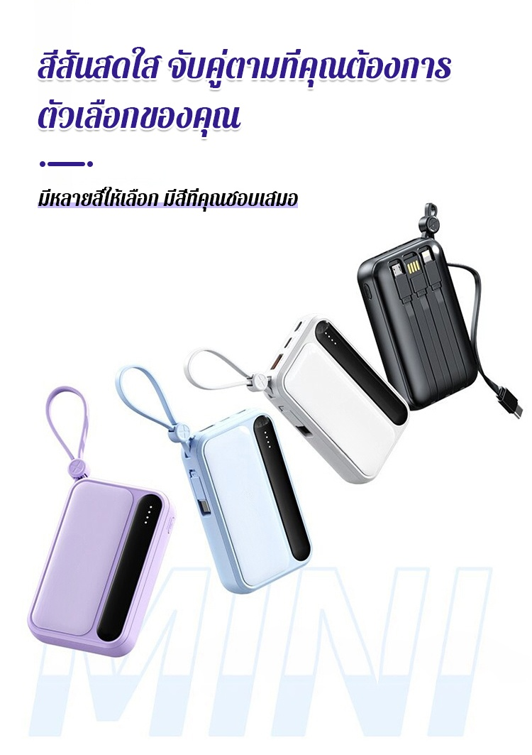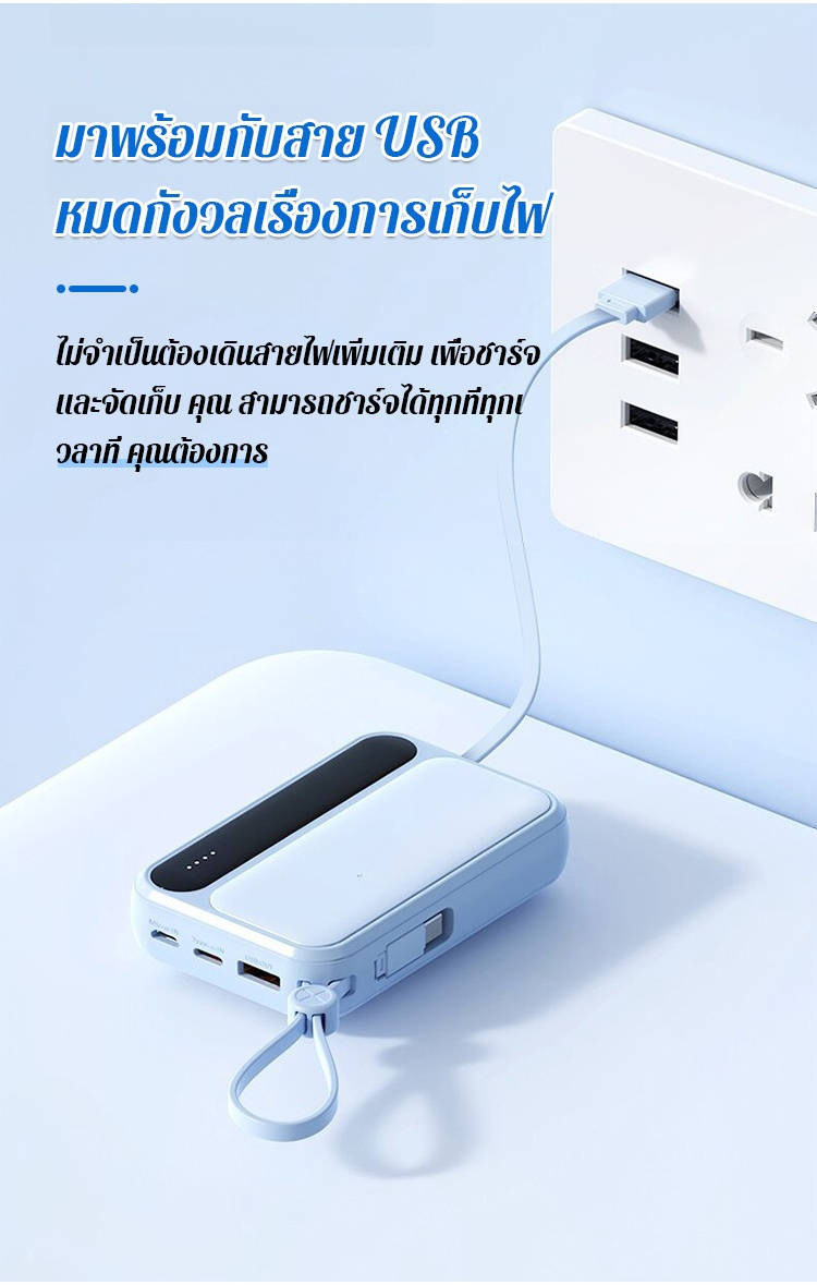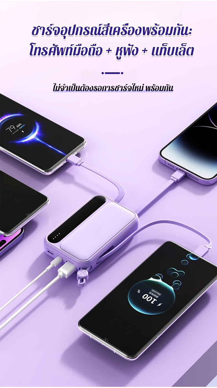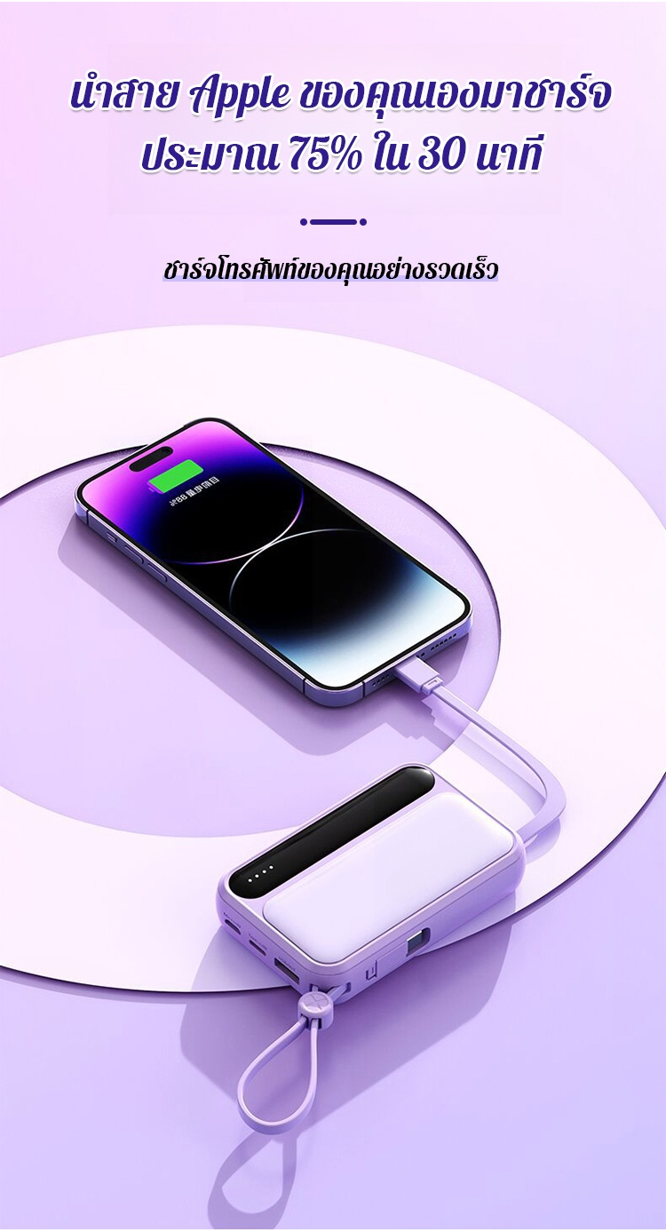 พาวเวอร์แบงค์ความจุขนาดใหญ่พร้อมสายเคเบิลในตัว