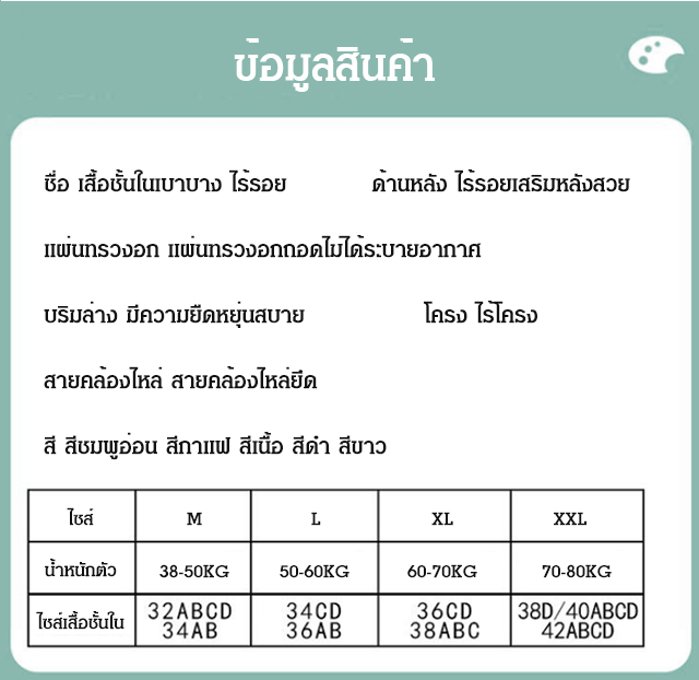 ไม่มีผูกมัด เสื้อชั้นในเบาบาง ไร้รอย