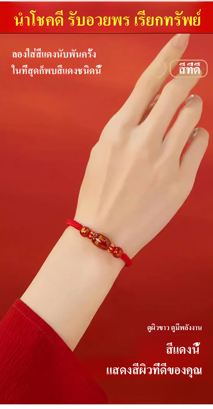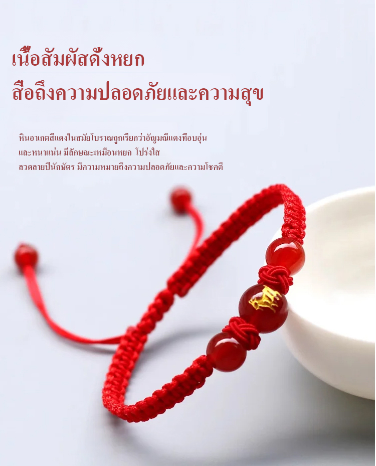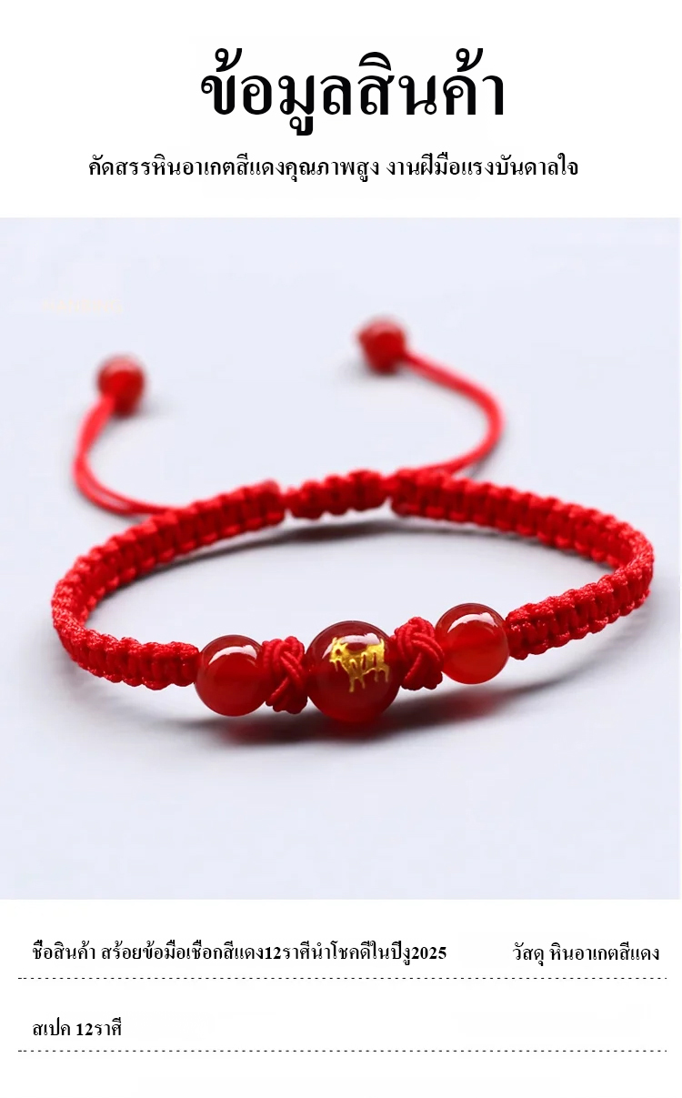 สร้อยข้อมือเชือกสีแดง12ราศีนำโชคดีในปีงูค.ศ.2025